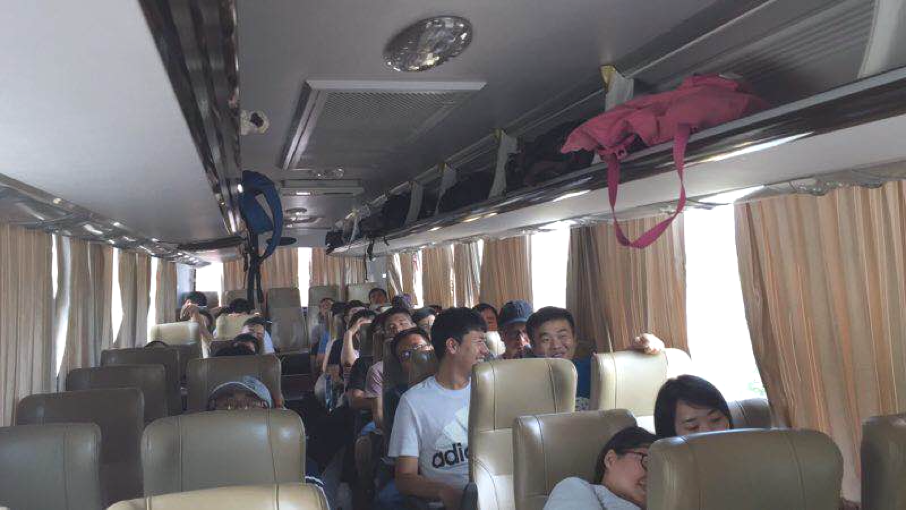 各個(gè)部門(mén)集合,乘坐(zuò)大(dà)巴車(chē)前往目的(de)地(dì)。
