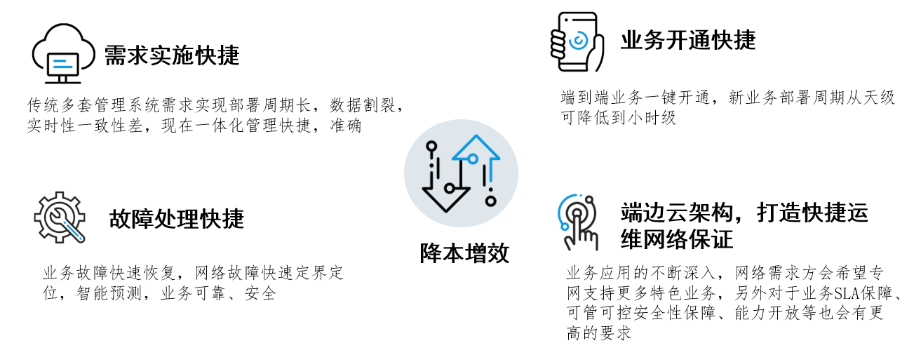 業(yè)務運維保障能(néng)力需求提升跨域跨廠(chǎng)家(jiā)網絡告警、性能(néng)多(duō)維映射能(néng)力,針對(duì)業(yè)務端到(dào)端呈現(xiàn),實現(xiàn)業(yè)¥務全景告警、性能(néng)不(bù)同維度指标投影(yǐng),提升業(yè)務SLA級别。