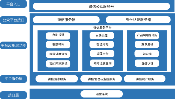 網絡運維與客戶服務微(wēi)信公衆平台利用(yòng)微(wēi)信的(de)富媒體(tǐ)與受衆較廣的 (de)先天優勢,有(yǒu)效提升用(yòng)戶服務感知(zhī)和(hé)滿意度,通(tōng)過互聯網+創新模式拓寬用(yòng)戶享受通(tōng)信服務β的(de)渠道(dào),提升網絡支撐市(shì)場(chǎng)和(hé)客服的(de)能(néng)力,有(yǒu)效改善客戶口碑(NPS),使網絡服務更加透明(míng)化(huà§)。